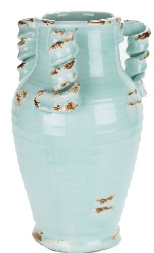 Napa Home & Garden Aegean Collection 16-Inch by 9-1/2-Inch Ceramic Urn with 3 Twisted Handles, Antique Aqua Finish Feature